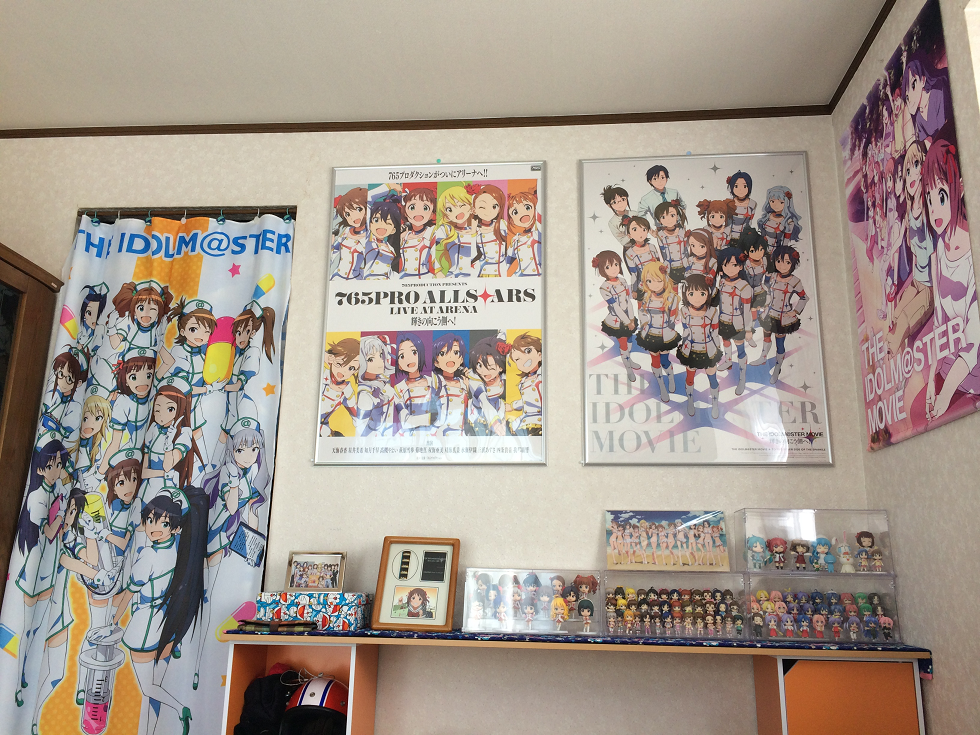 (いちよう後ろに一番くじのグラスとポップコーンセットがあります今回の移動で壁が1面空いたので、戦力外通告を受けたタペストリーが一枚復活できるようになりました。