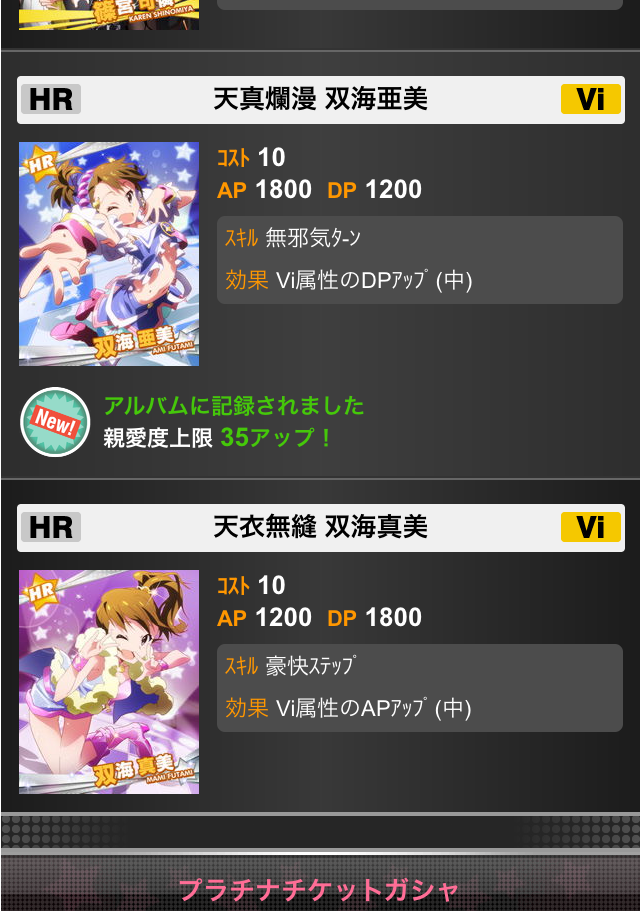 あとSR覚醒させるためにRガシャを回してたら中々の奇跡が起きました。