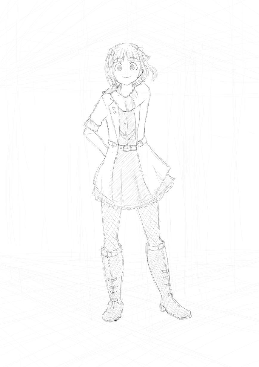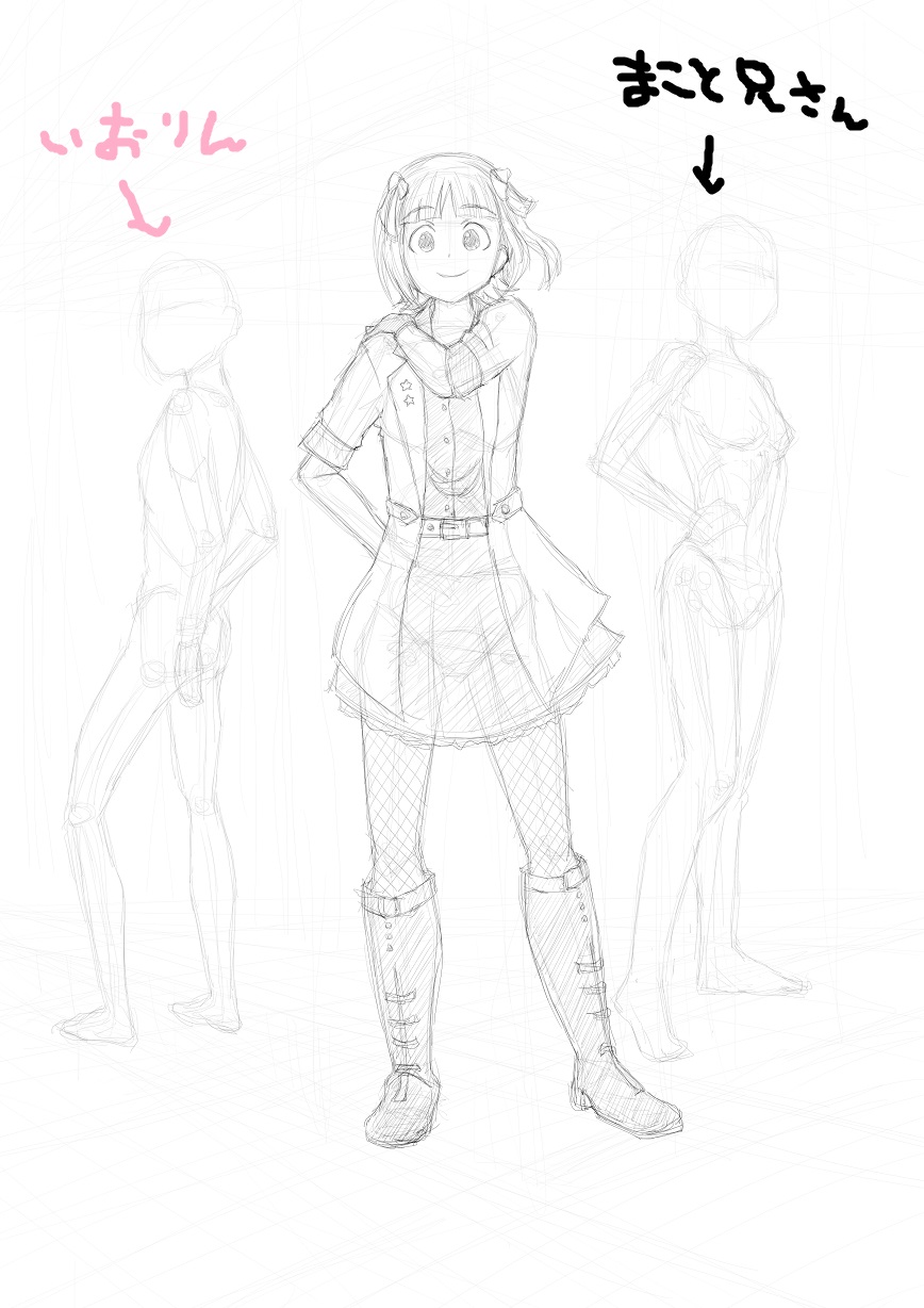 (描いてて悟空っぽいなとちょっと思いましたポーズがいけないのか?それとも肩幅やら腰幅が広いのか?或いは胸を強調してないからなのか?