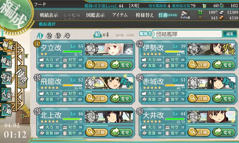 北上さんと大井っちも改二になると強くなるみたいなので、今はこの二人のレベリングをやっています