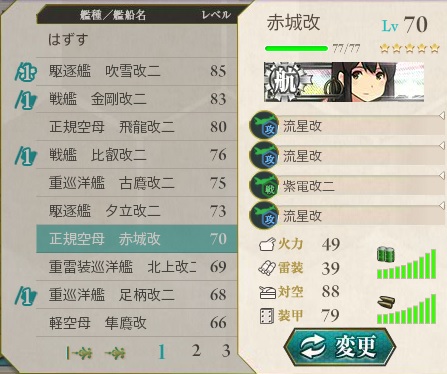 慢心さんは慢心慢心五月蝿いので最近全く使ってなかったんですが・・・なんかレベル高いし一回艦載機積まないで出撃して大破して帰ってくるしでもう最悪でした。