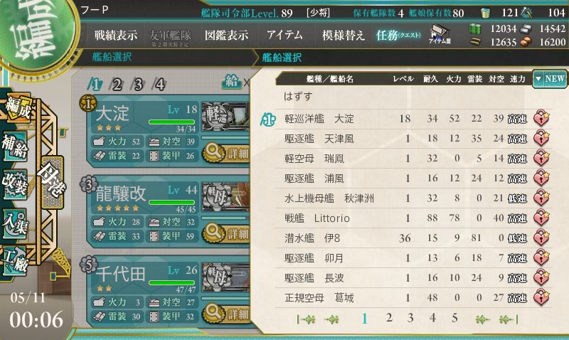 大淀をお迎えしといたほうがいいということで、E1を周回しておーぷんGETしました。