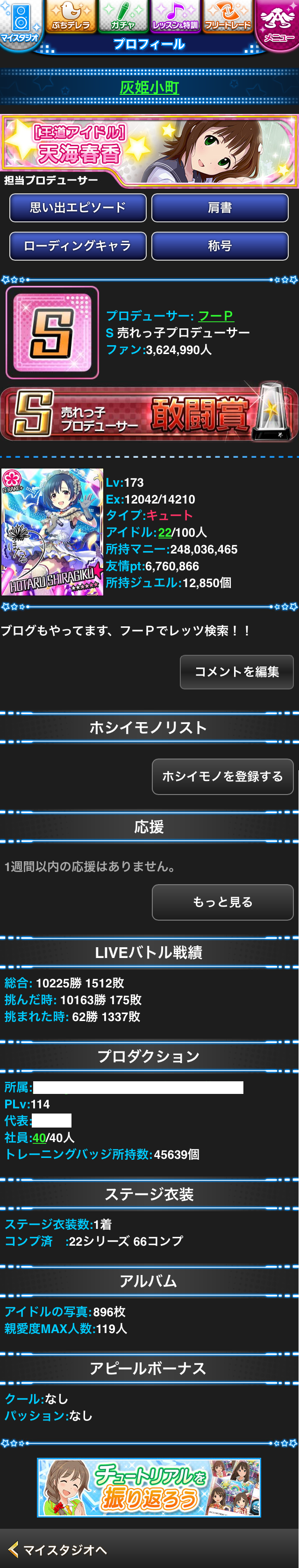 シンデレラガールズ、ミリオンライブ!、サイドエムの休止です!!CGとMLは始めてから約4年間、一日も欠かさずログインしていたので正直辛かったです・・・