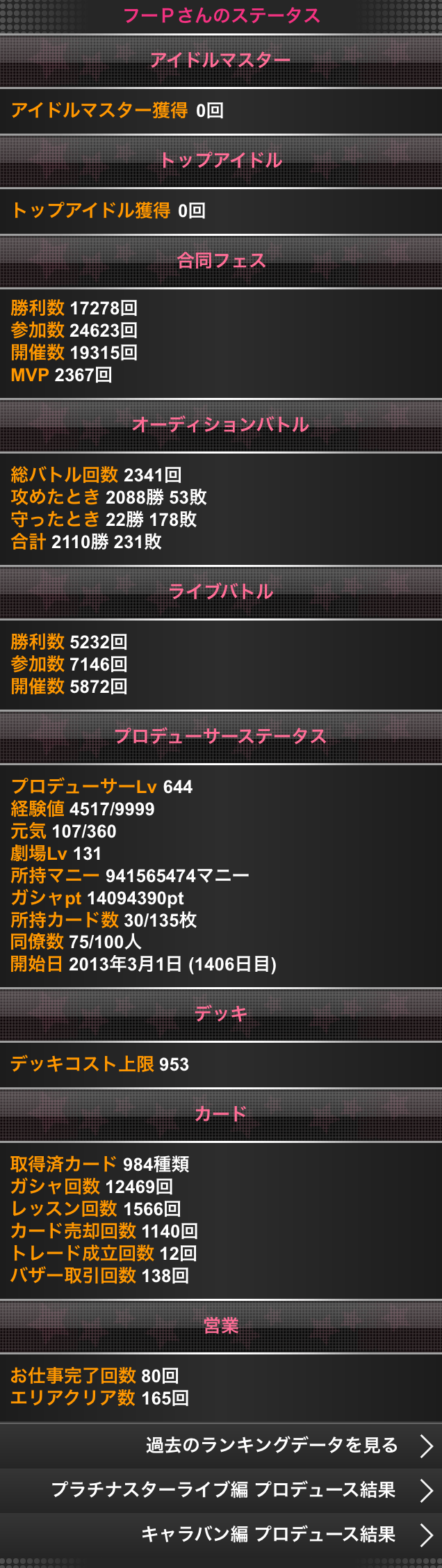 (最終データは最後に載せておきますあの頃は朝になるとすぐに 不安がやってきたんだよ今は悲しいけど それがない分少しだけホントほっとしているんだけどまあもうイベントも走ってなかったですし、4年間毎日ログイン記録というのは自分にとって高く積み上げすぎていた感がありしんどかったので、イイきっかっけになったと思います!!