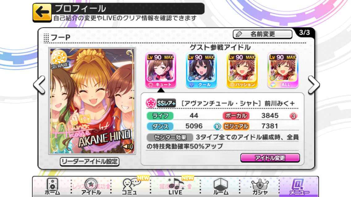 デレステを始めて一番最初に来てくれたSSRがちゃんみおで、その後三色SSRも来てくれていたので、ちゃんみおだけはカードコンプリートしていたのに・・・