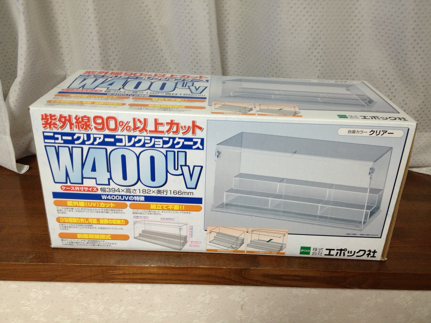 ニュークリアーコレクションケースW400UV クリアー」です。ホコリが天敵になりそうだったので密閉型のケースにしました。