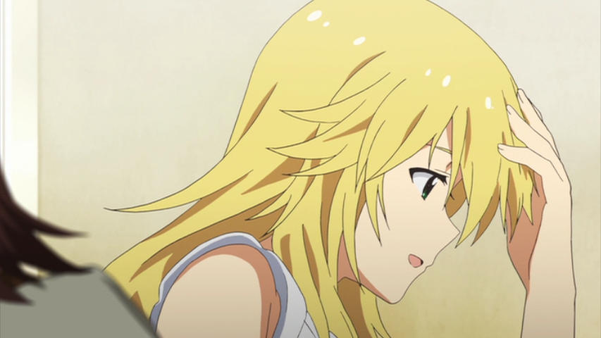 劇場版アイマスの中盤、トイレでの春香とのやりとり中頭を自分で撫でるシーン。