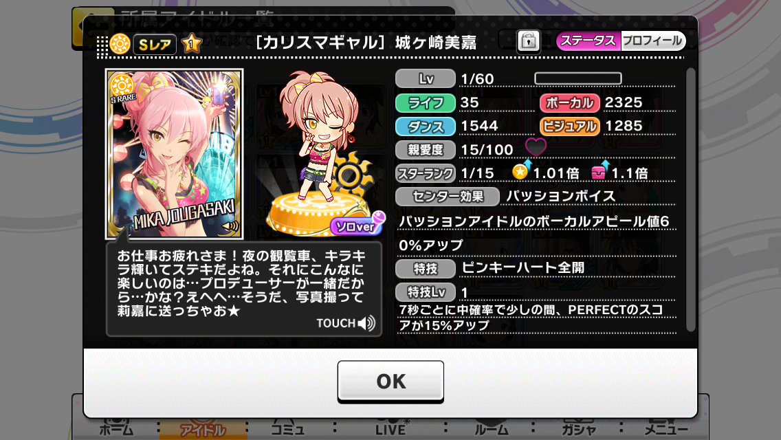 ちゃんみおSR目指して頑張ろうかなと思い始めた2回目でSR美嘉姉が出たのでもうこれでイイヤってことでゲームスタート!!
