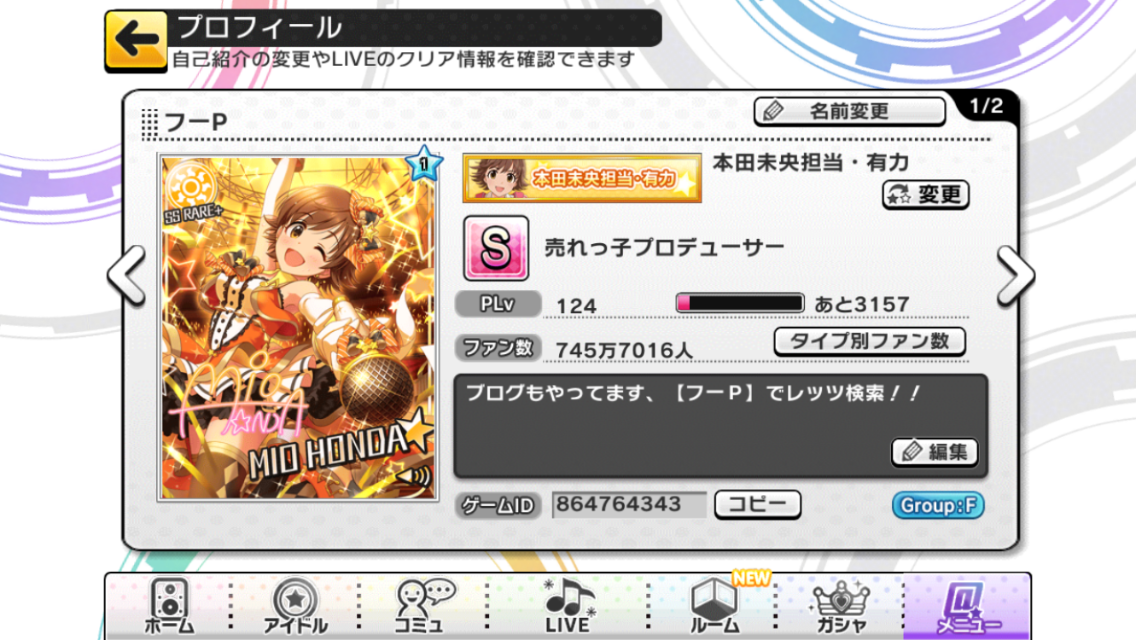 (また本家シンデレラガールズのほうもそろそろデッキを見直したい感じですので、近いうちに生放送でもやってみようかなとか考えています・・・)ではまた近いうちに~