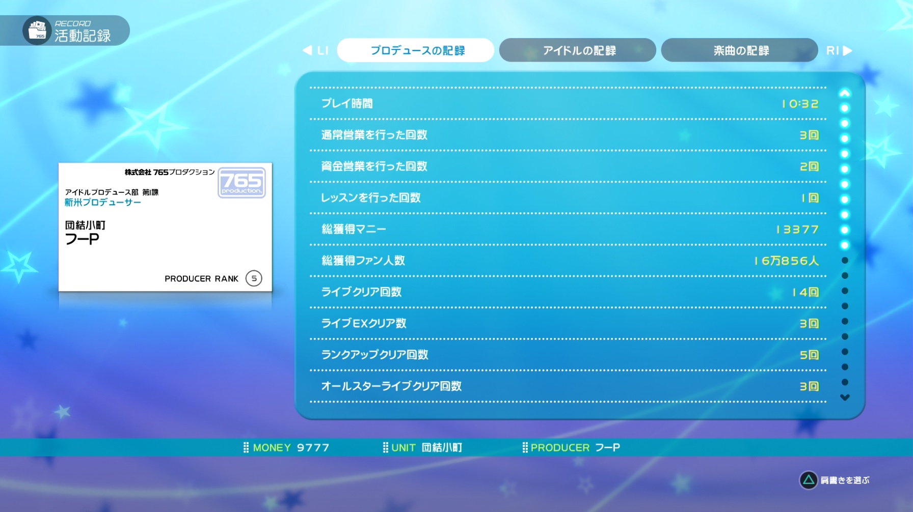 プロデュースは春香→いおりん→真兄さん→千早→美希→我那覇さんの順で現在6人ですね。